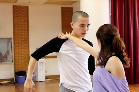 孙坚在认真的练习舞蹈